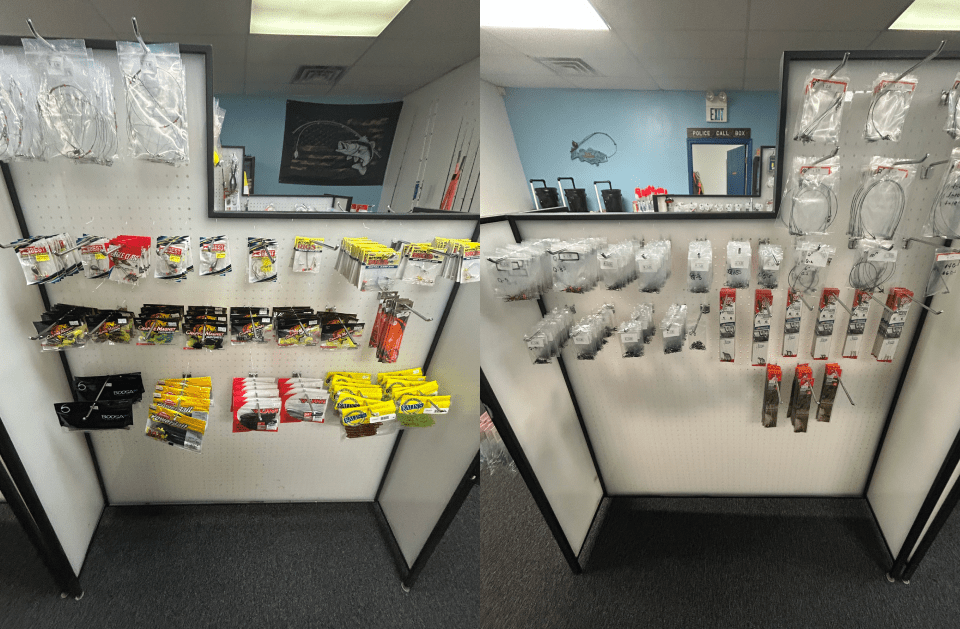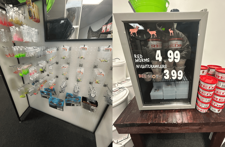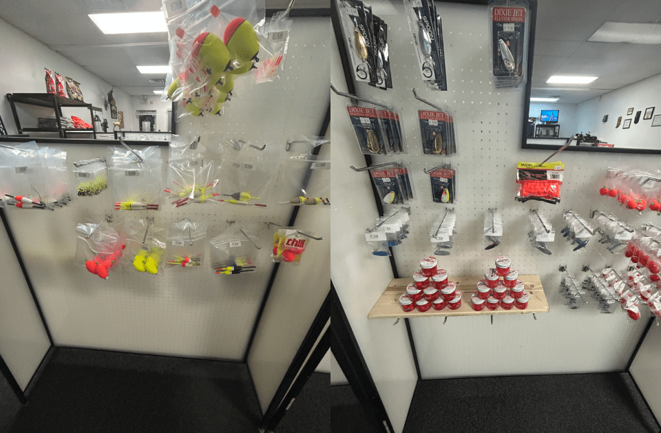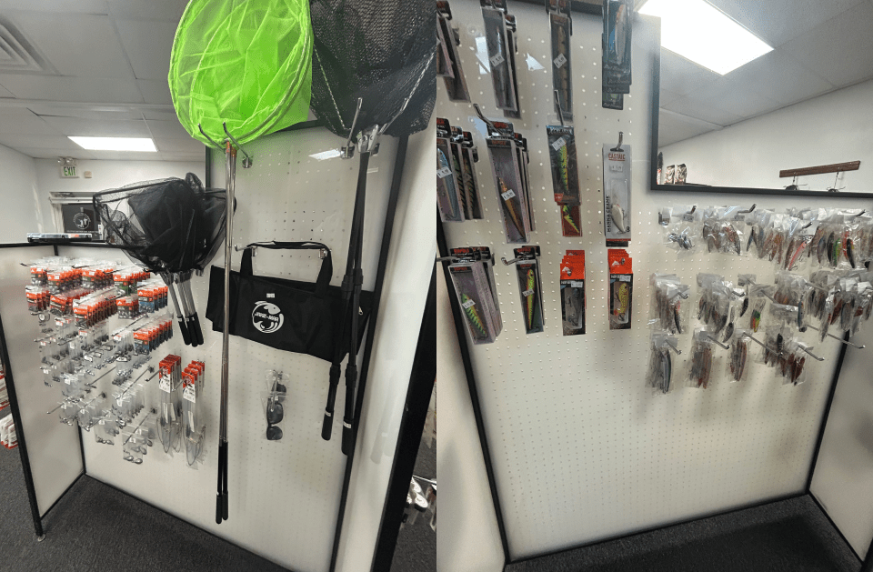 Visitors can explore tackle boxes, nets, and accessories without appointments.